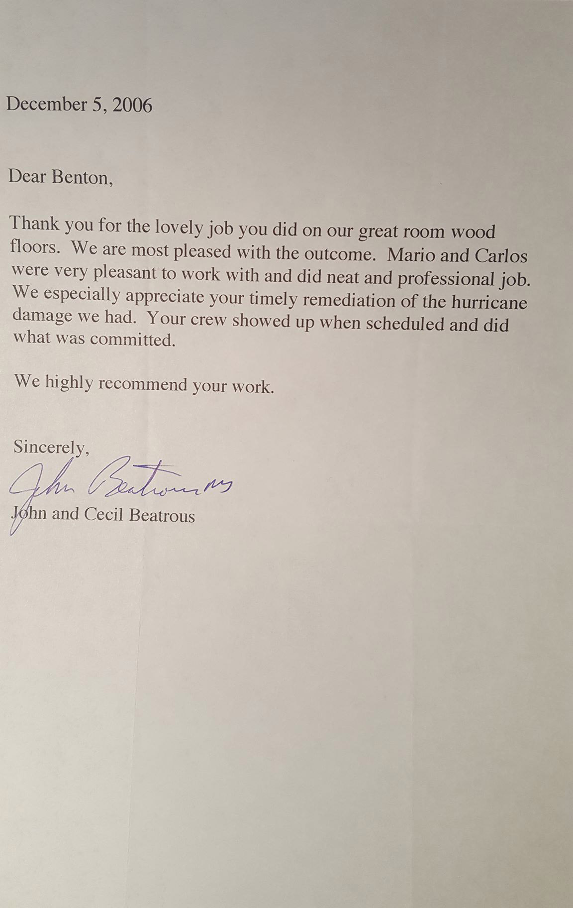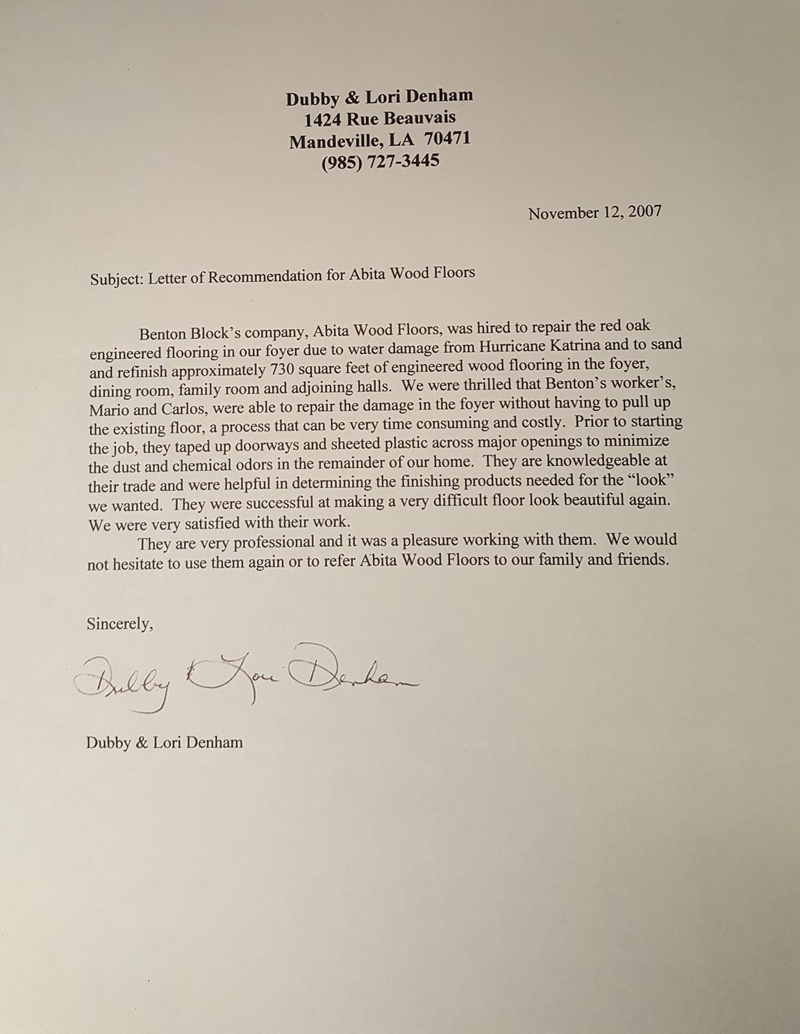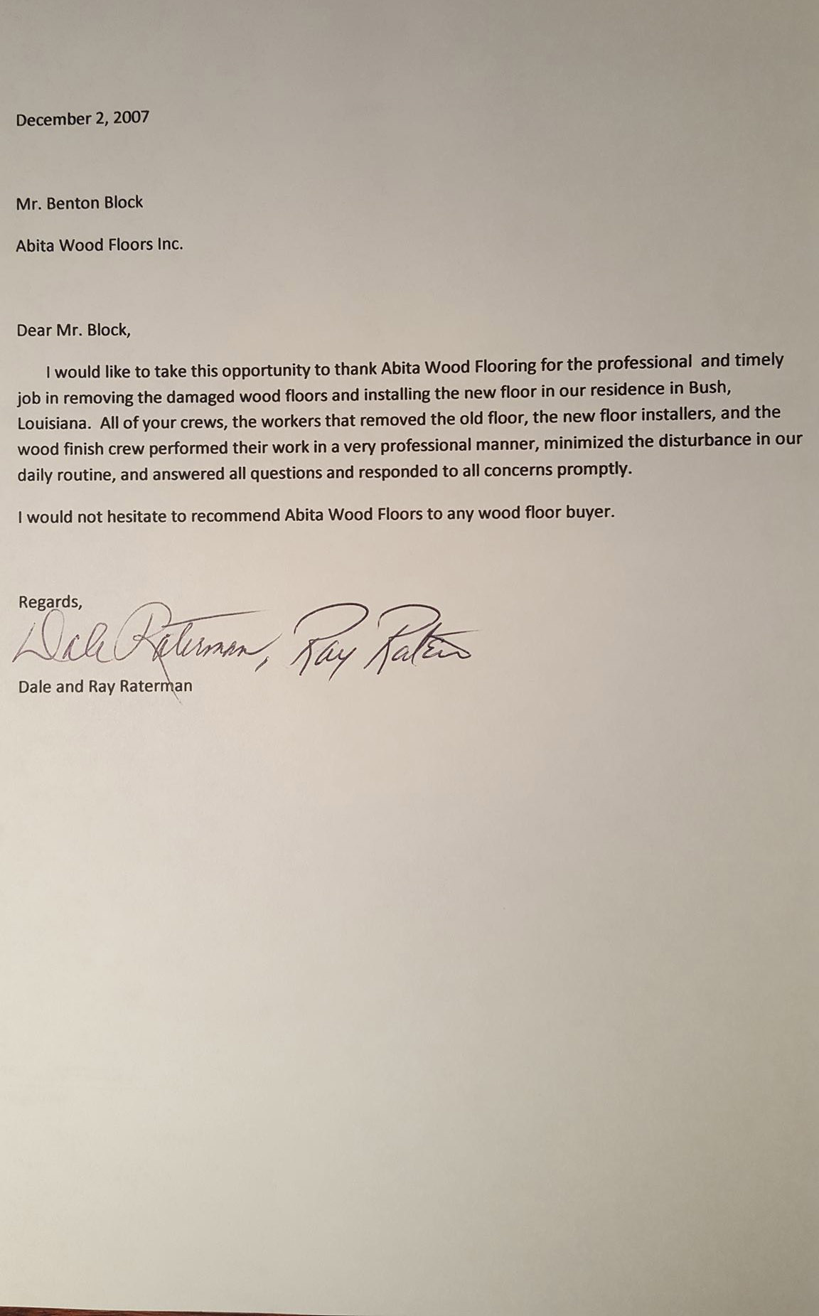 Abita Wood Floors > Testimonials